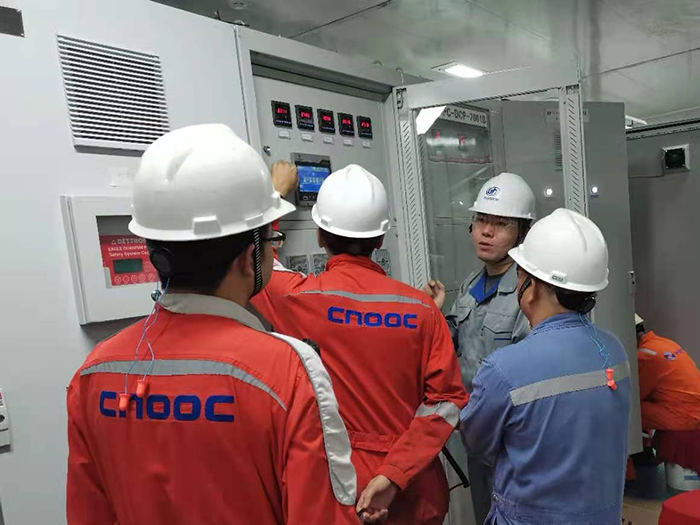 我公司與哈爾濱廣瀚燃氣輪機有限公司簽訂的“中海油潿洲12-1平臺燃氣輪機發(fā)電機組”項目2套直流電源系統(tǒng)近日去現(xiàn)場進行安裝調(diào)試。