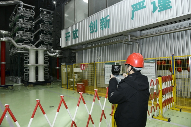 中國電科院科研人員開展適海型柔性直流換流閥試驗前檢查。