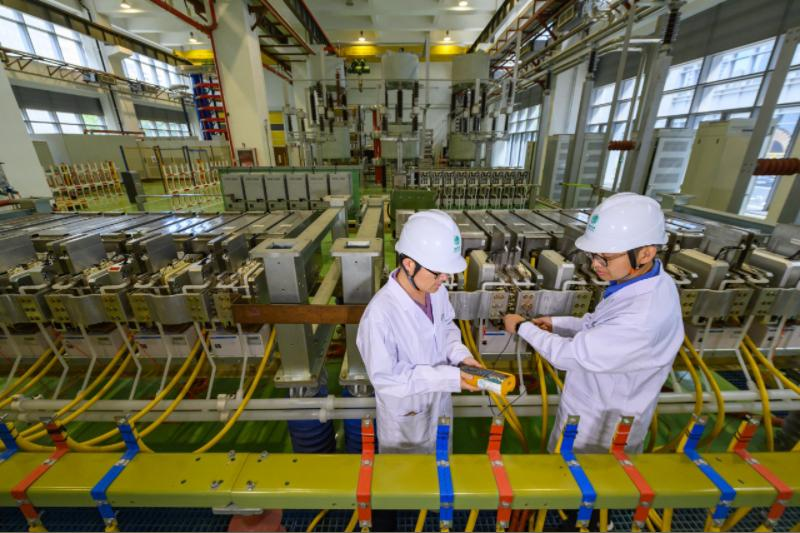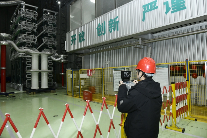 中國電科院科研人員開展適海型柔性直流換流閥試驗(yàn)前檢查。