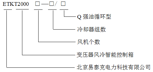 型號(hào)舉例:ETKT2000 12-4/Q則為北京易泰克電力科技有限公司生產(chǎn)的12個(gè)風(fēng)機(jī)4組冷卻器強(qiáng)油循環(huán)風(fēng)冷智能控制箱